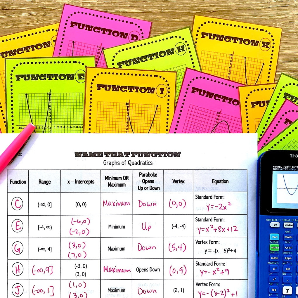 Graphs of Quadratic Functions | Name That Function | Matching Activity | Print and Digital