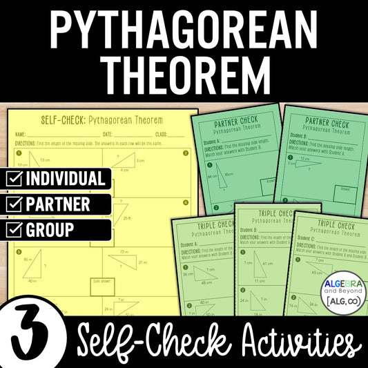 Pythagorean Theorem Review Activity – Self-Check Practice Worksheets