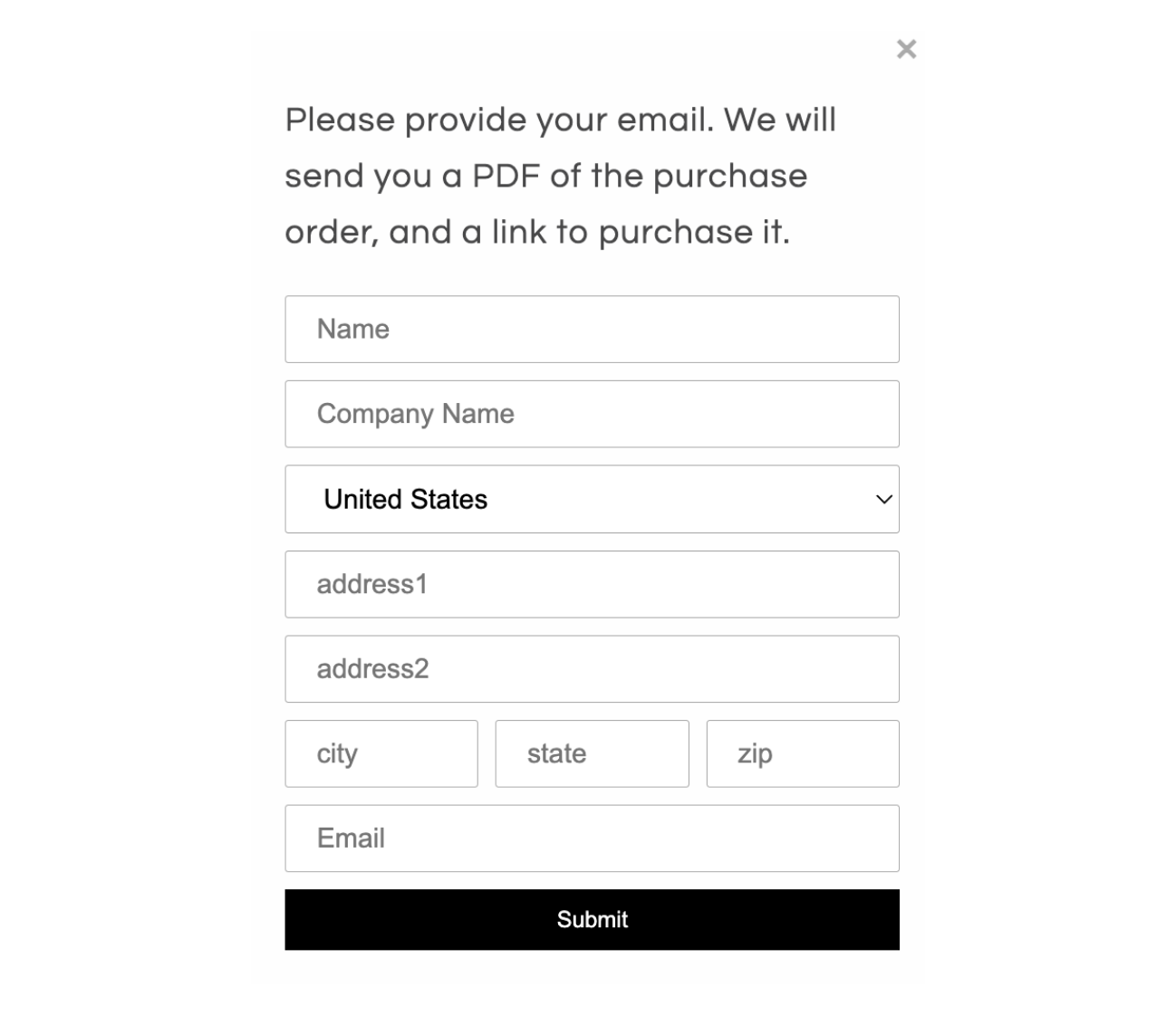We recommend using your email address so you have a record of the request. Once you receive the purchase order by email, simply forward it to the approving party.