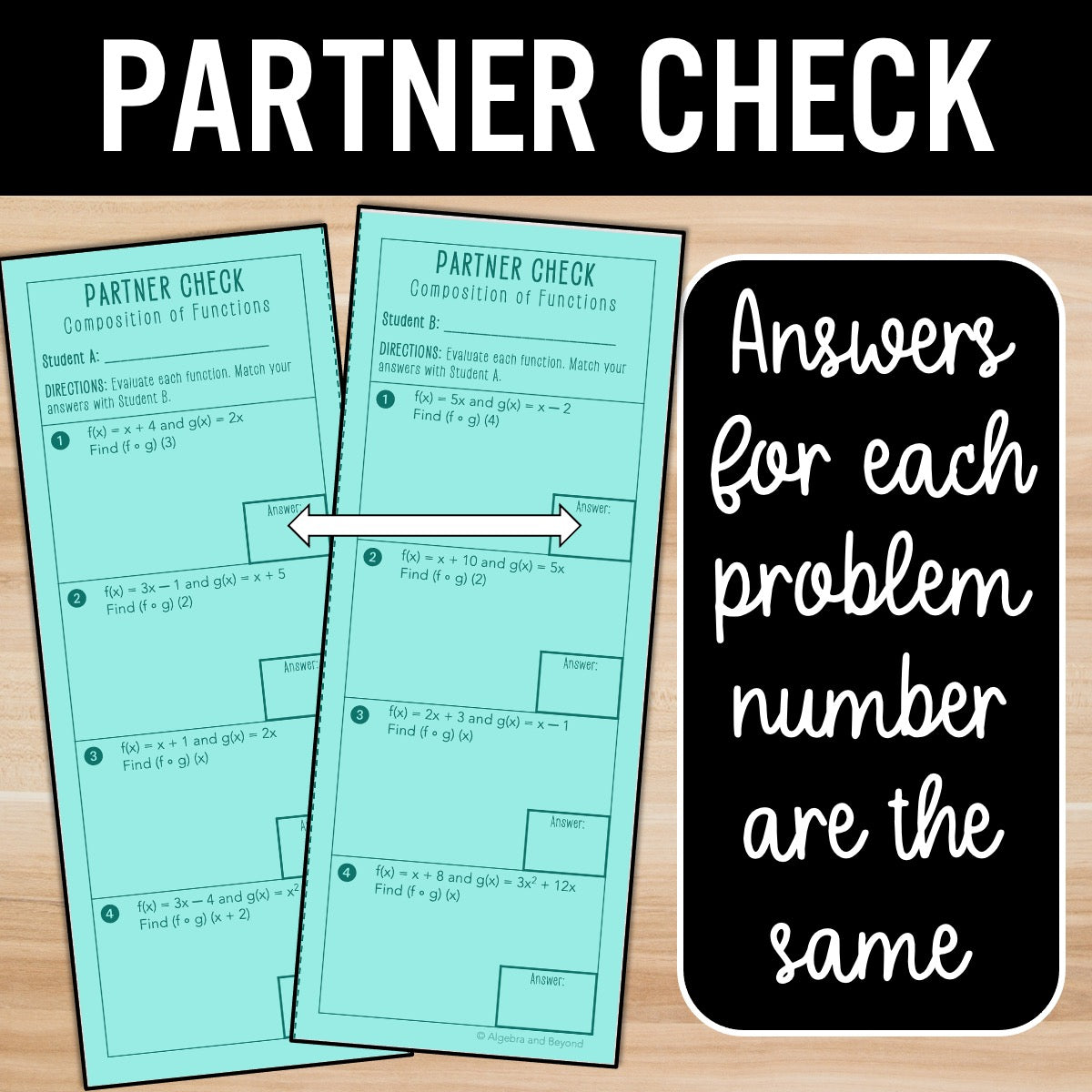 Composition of Functions Review Activity – Self-Check Practice Worksheets