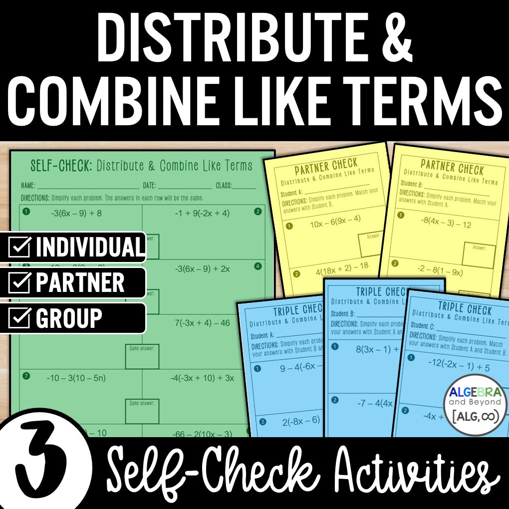 Distribute and Combine Like Terms | Practice | Self-Check Review Activities