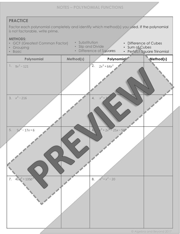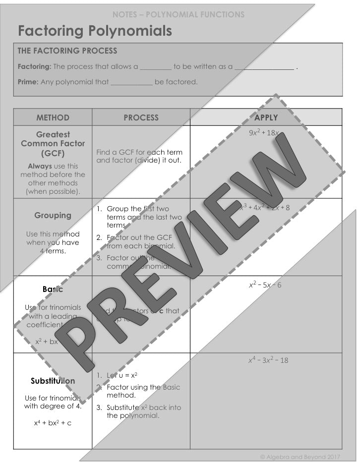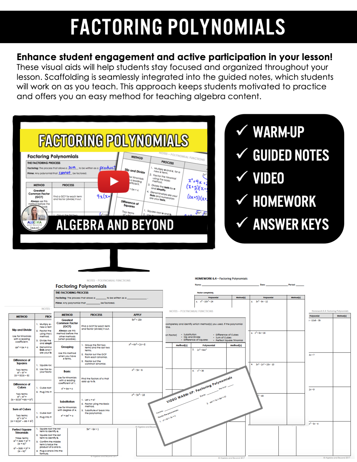 Factoring Polynomials Lesson | Video | Guided Notes | Homework