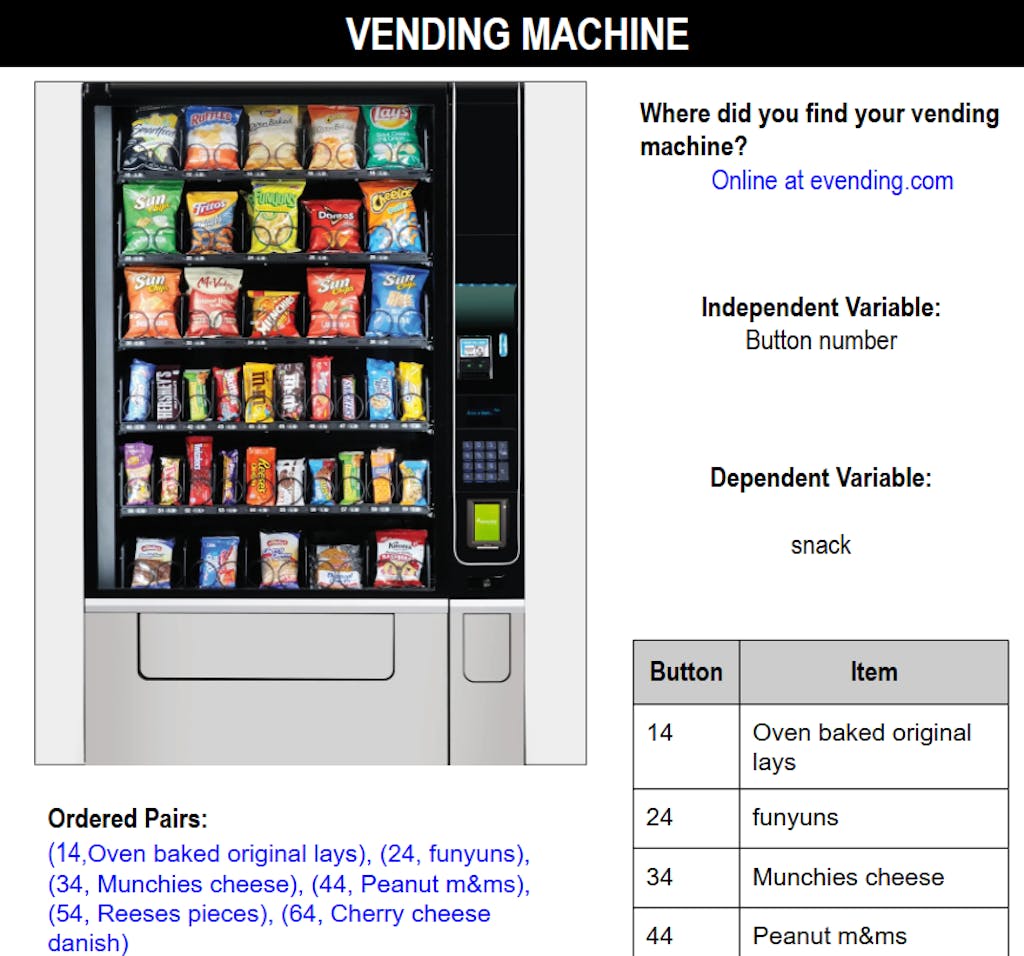 - Identify and describe functions using tables and ordered pairs.