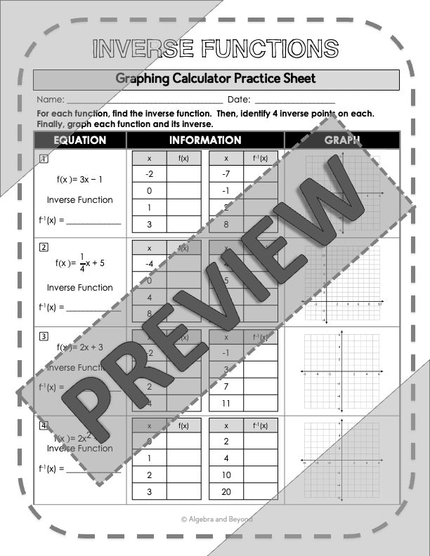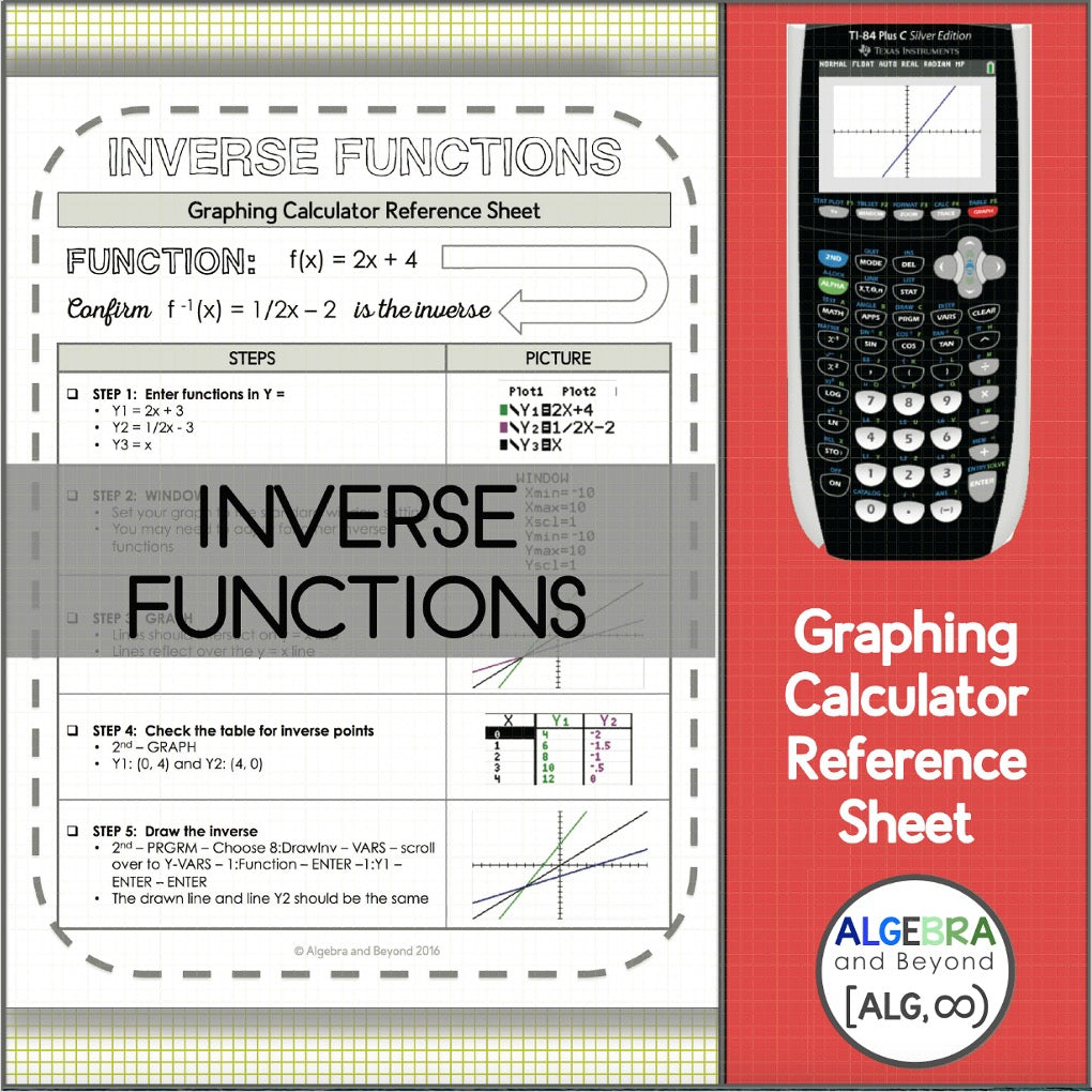Graphing Inverse Functions | TI-84 Calculator Reference Sheet and Practice
