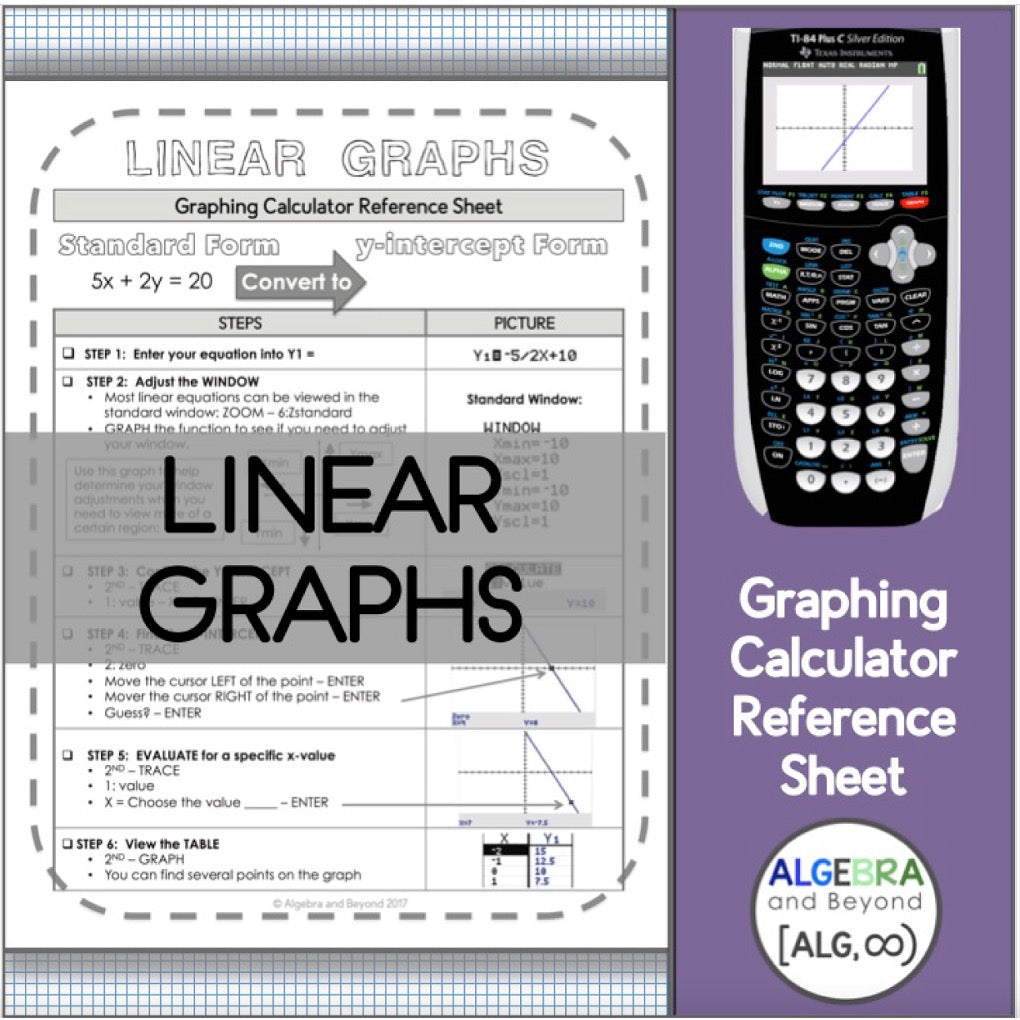 Graphing Linear Functions | TI-84 Calculator Reference Sheet and Practice