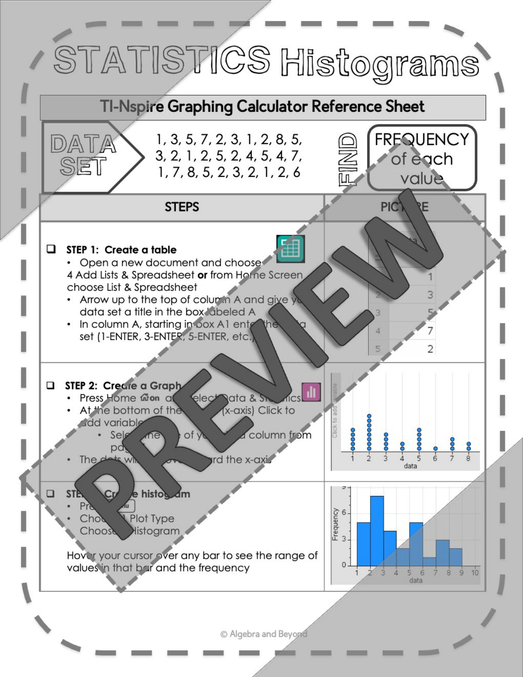 Histograms | Statistics | TI-Nspire Graphing Calculator Reference Sheet