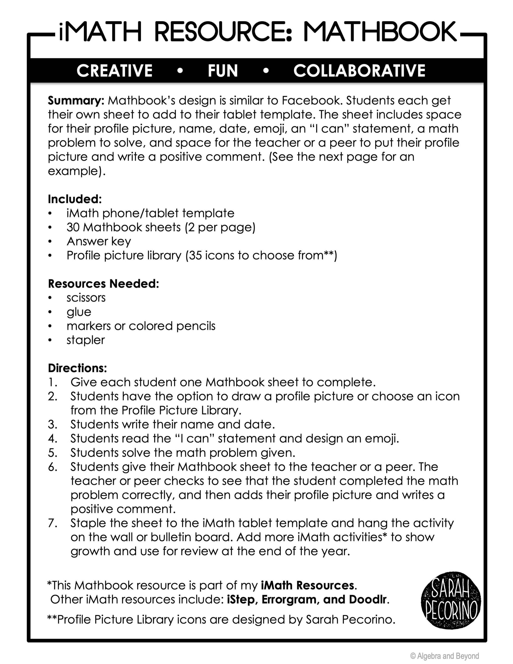 Mathbook’s design is similar to a Facebook post. Even if a student doesn’t use Facebook, this activity is engaging and fun for everyone! My students really like picking out their icons because it gives the activity a personal touch that most math activities do not offer. Also, receiving feedback from a peer helps create a positive classroom environment.