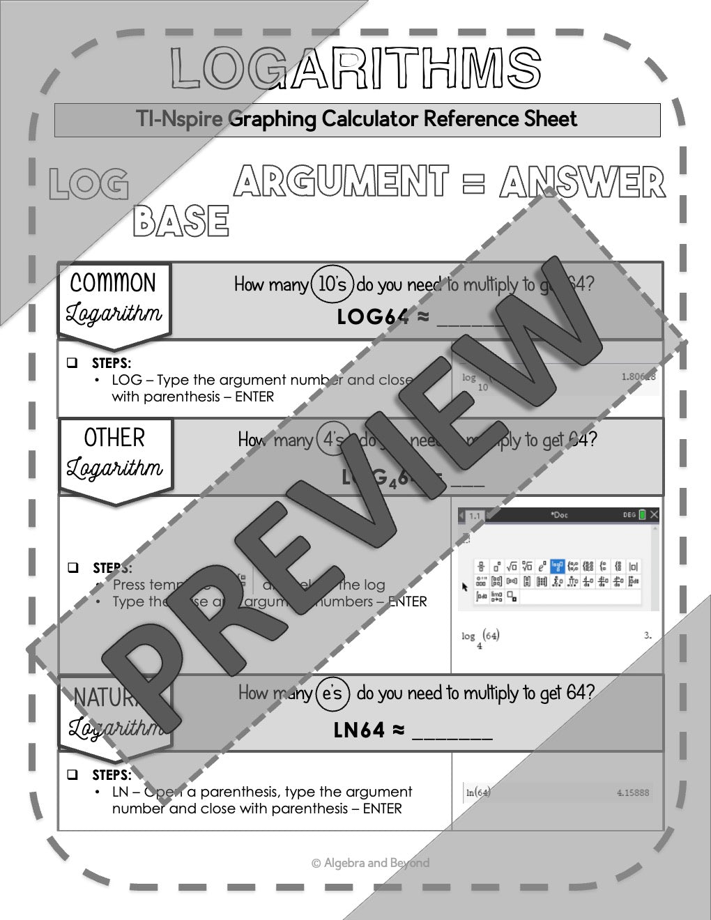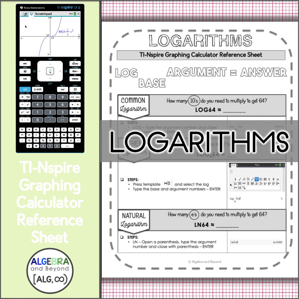 Logarithms | TI-Nspire Graphing Calculator Reference Sheet