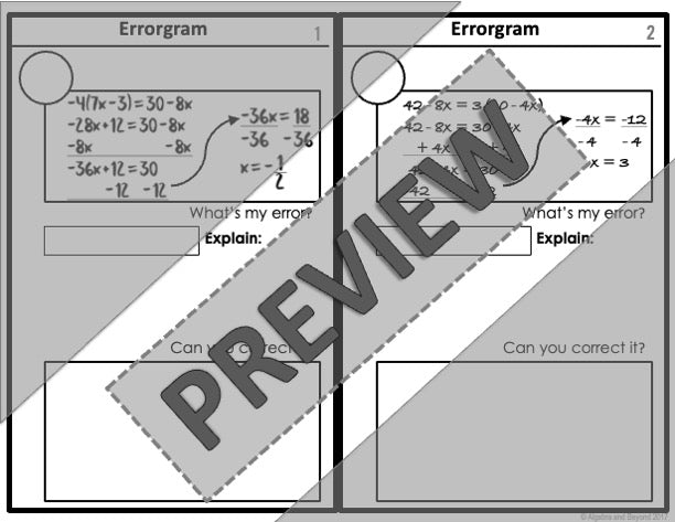 This no-prep, activity has a design is similar to Instagram. Each sheet includes a picture of a worked out problem that has an error. Students are to find the error and correct the problem. Perfect review activity for after an assessment or early finishers.