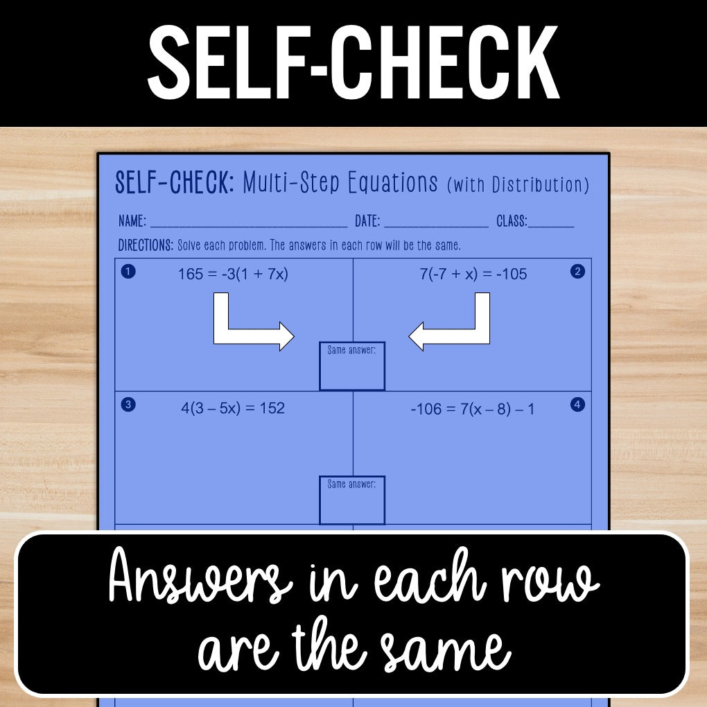 Multi-Step Equations Practice | Distribute | Self-Check Review Activities