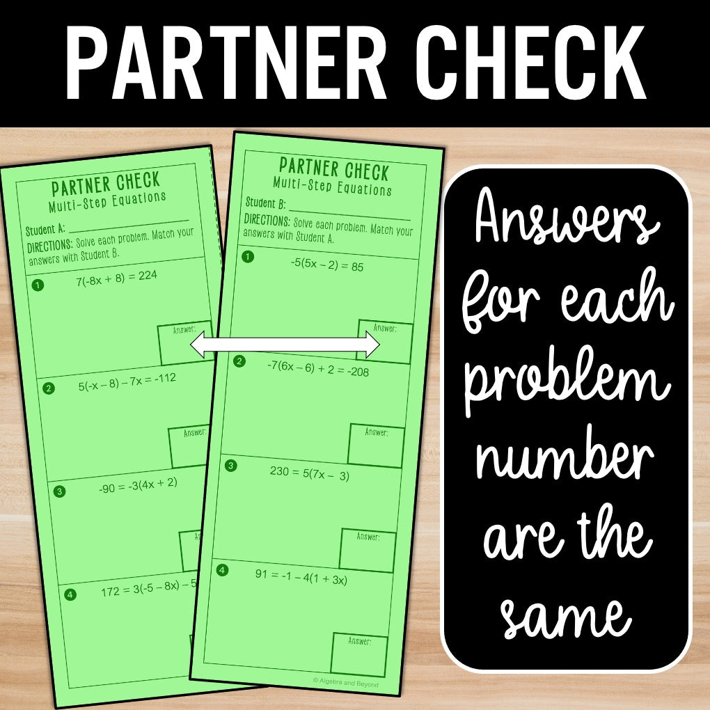 These resources that not only serve as rock-solid review but they also are self-checking. The best part? You're getting not one, not two, but THREE resources in one! Yup, handouts for individual, partner, or groups of three, each with different problems but those golden matching answers! Ready to dive in and make review a breeze? Let's do this!
