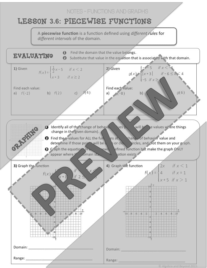 Piecewise Functions Lesson | Algebra 2 | Warmup | Guided Notes | Homework