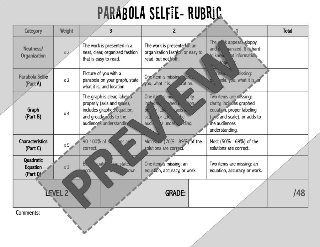 Parabola Selfie: Students will analyze a parabola in the real world by demonstrating their knowledge and understanding of the following skills: