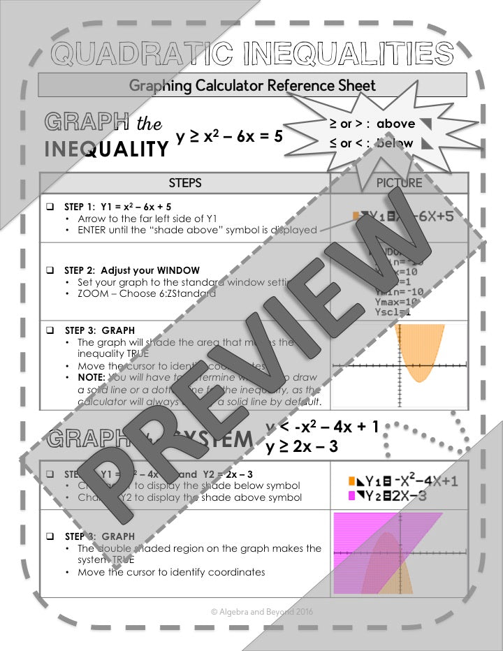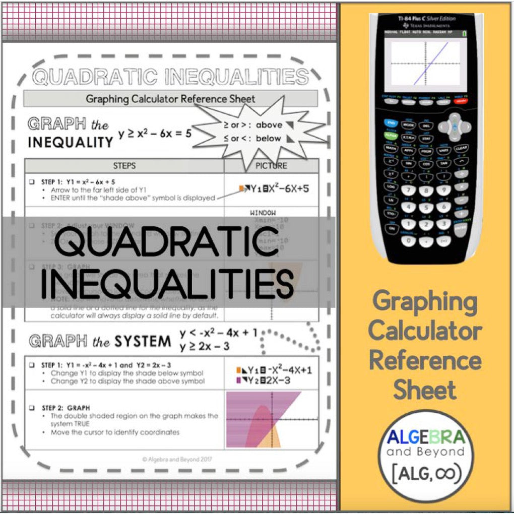 Quadratic Inequalities | TI-84 Graphing Calculator Reference Sheet and Practice