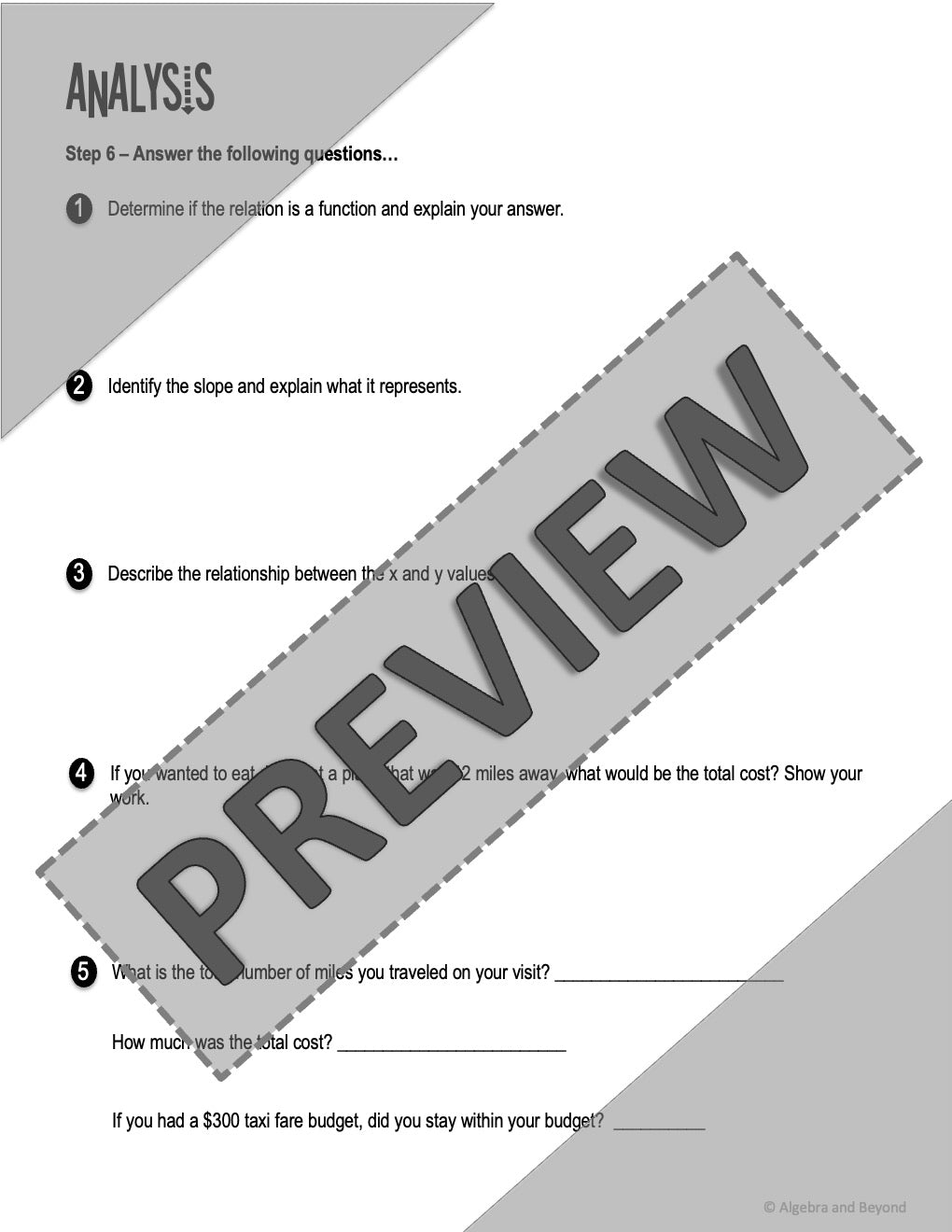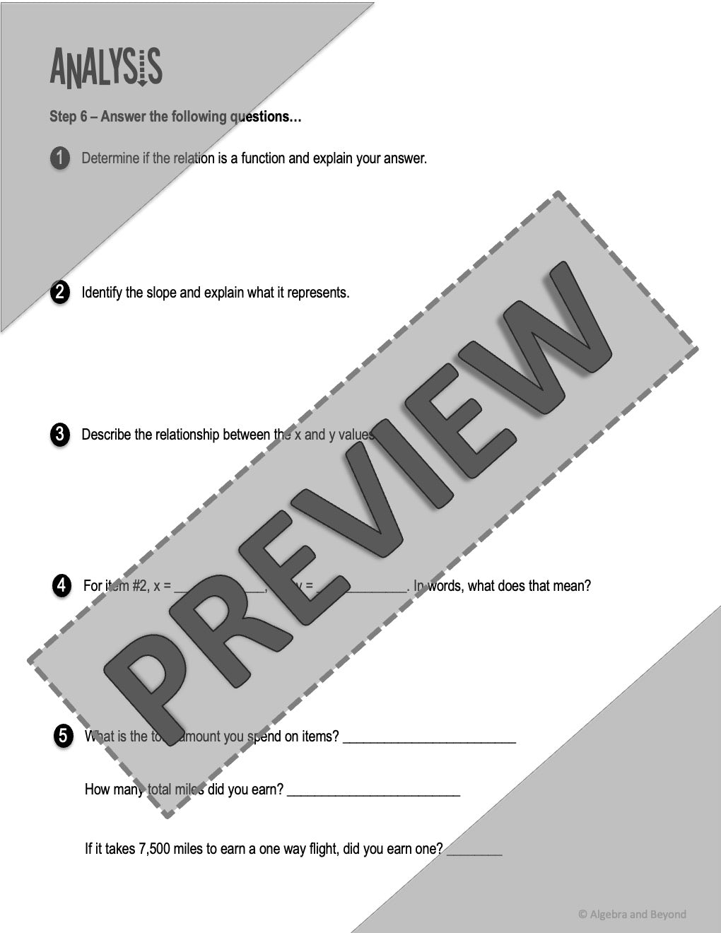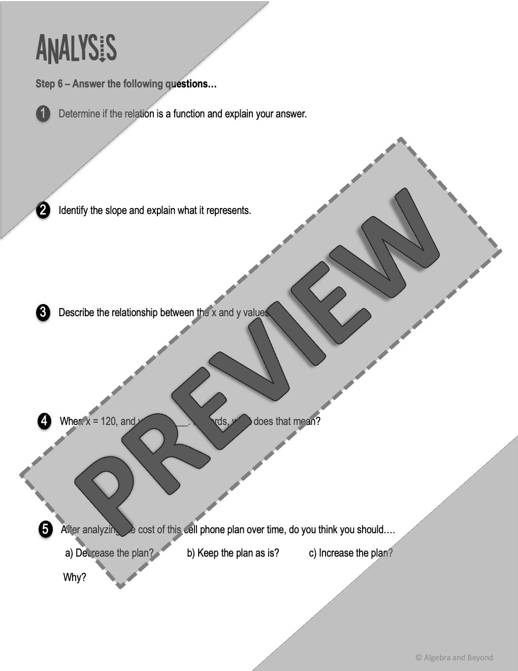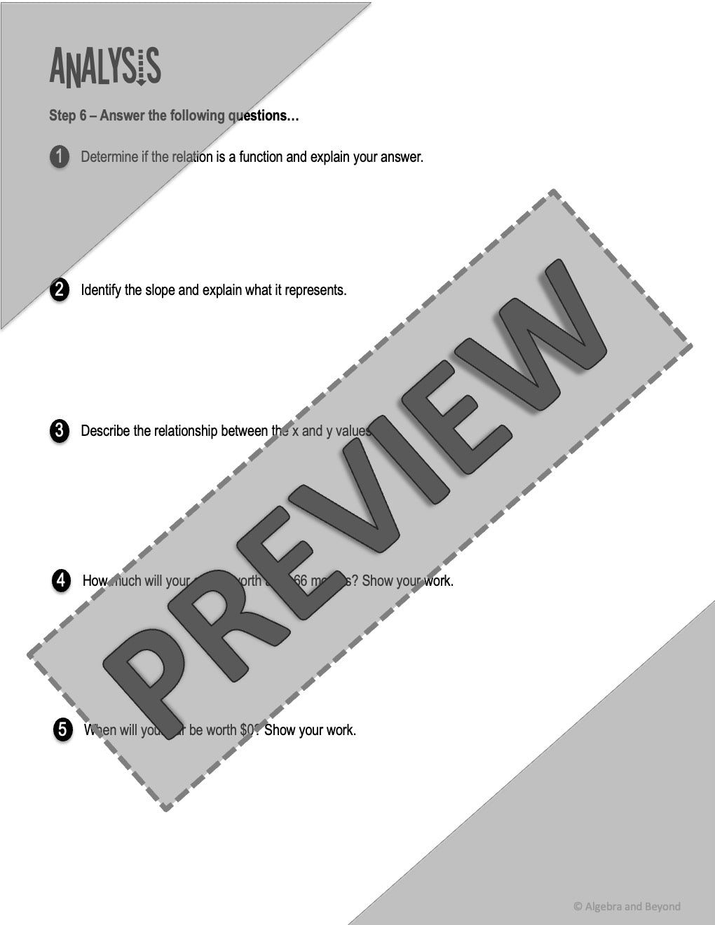 OBJECTIVE: Analyze a linear equation in a real world setting. Students will be able to demonstrate your knowledge and understanding of the following skills:
