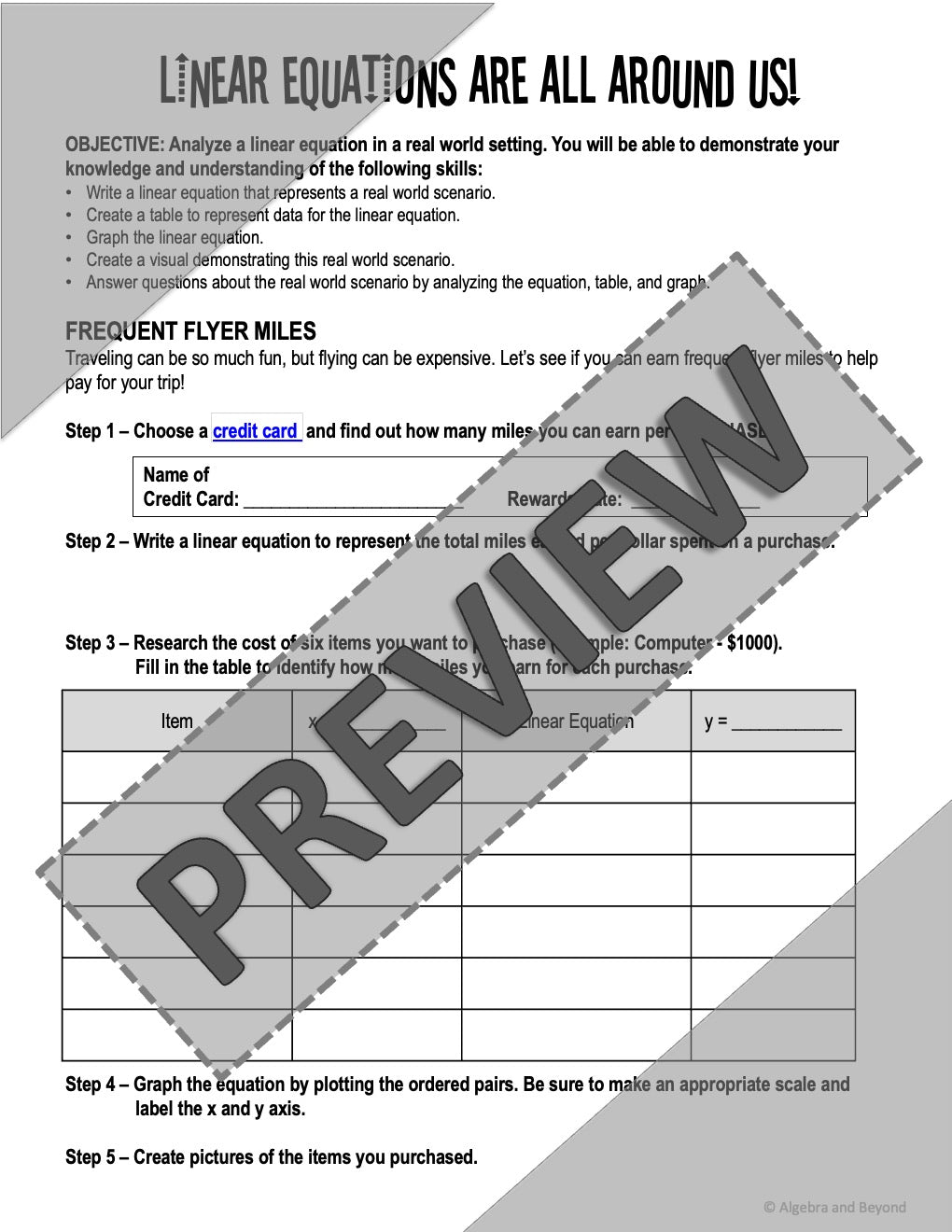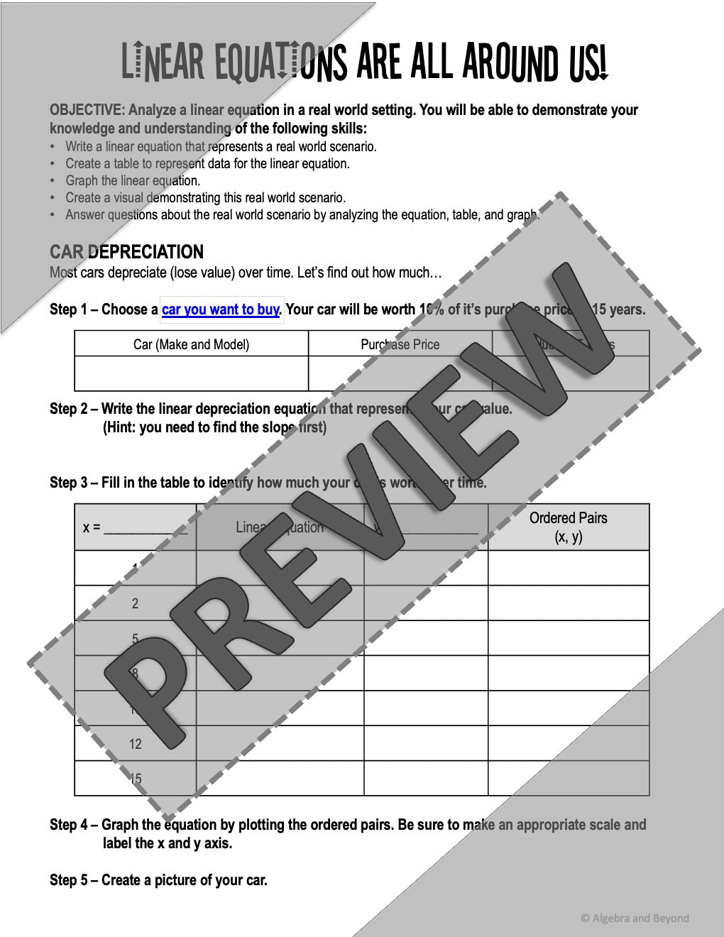 Real World Linear Equations | Project Based Learning | Print and Digital