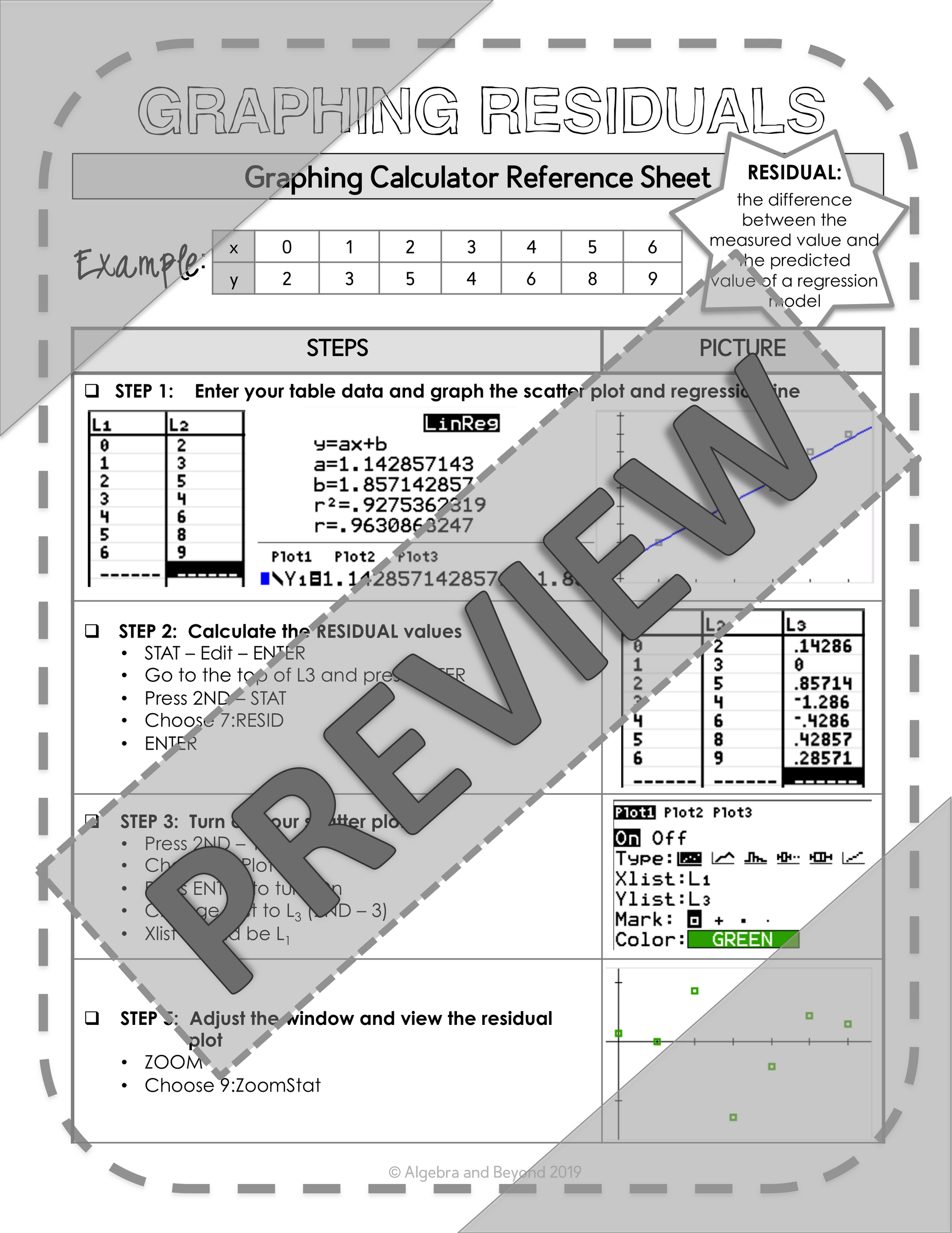 Great cheat sheet for my students on how to calculate and graph residuals on the calculator.