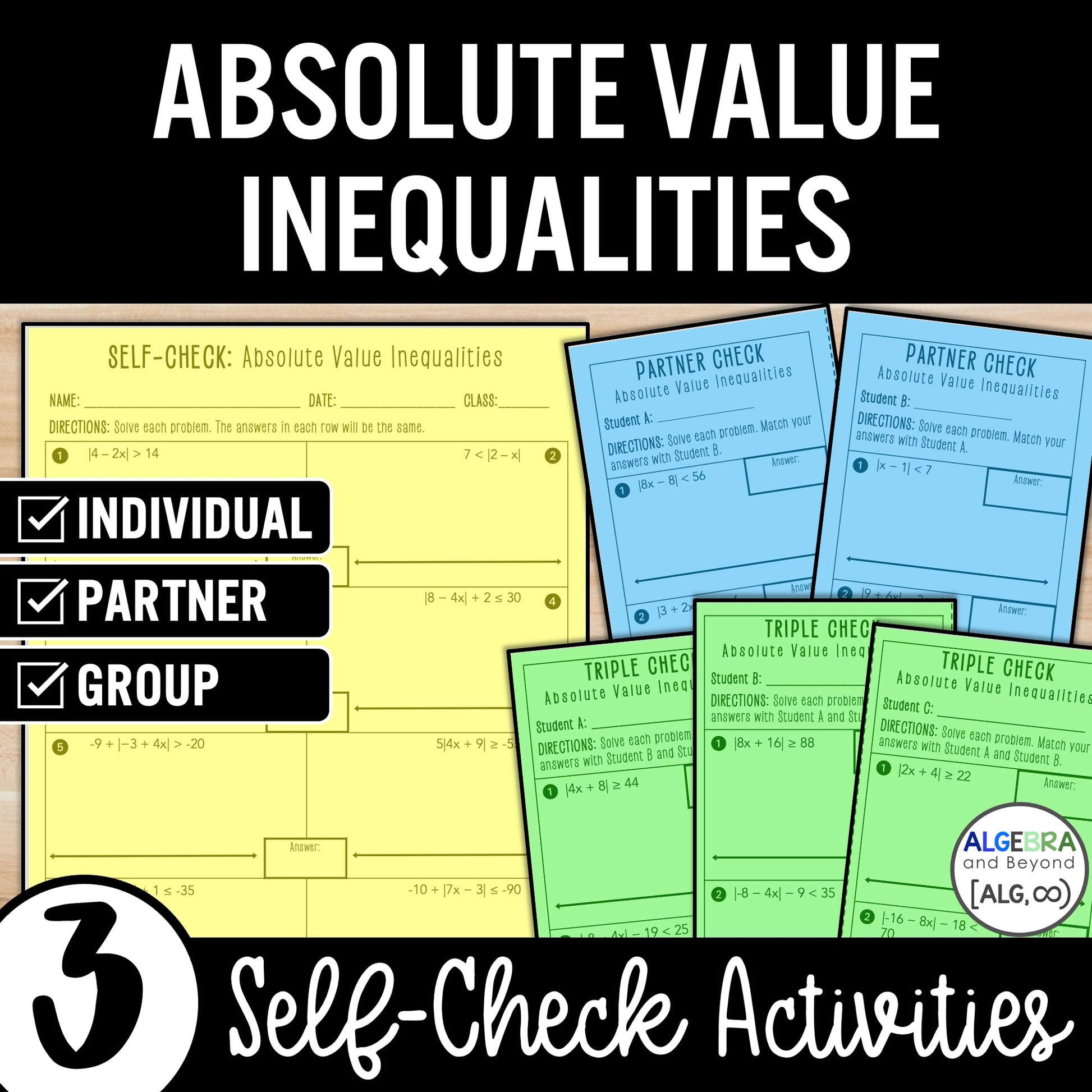 Solve Absolute Value Inequalities Review Practice Activity - Partner Worksheets