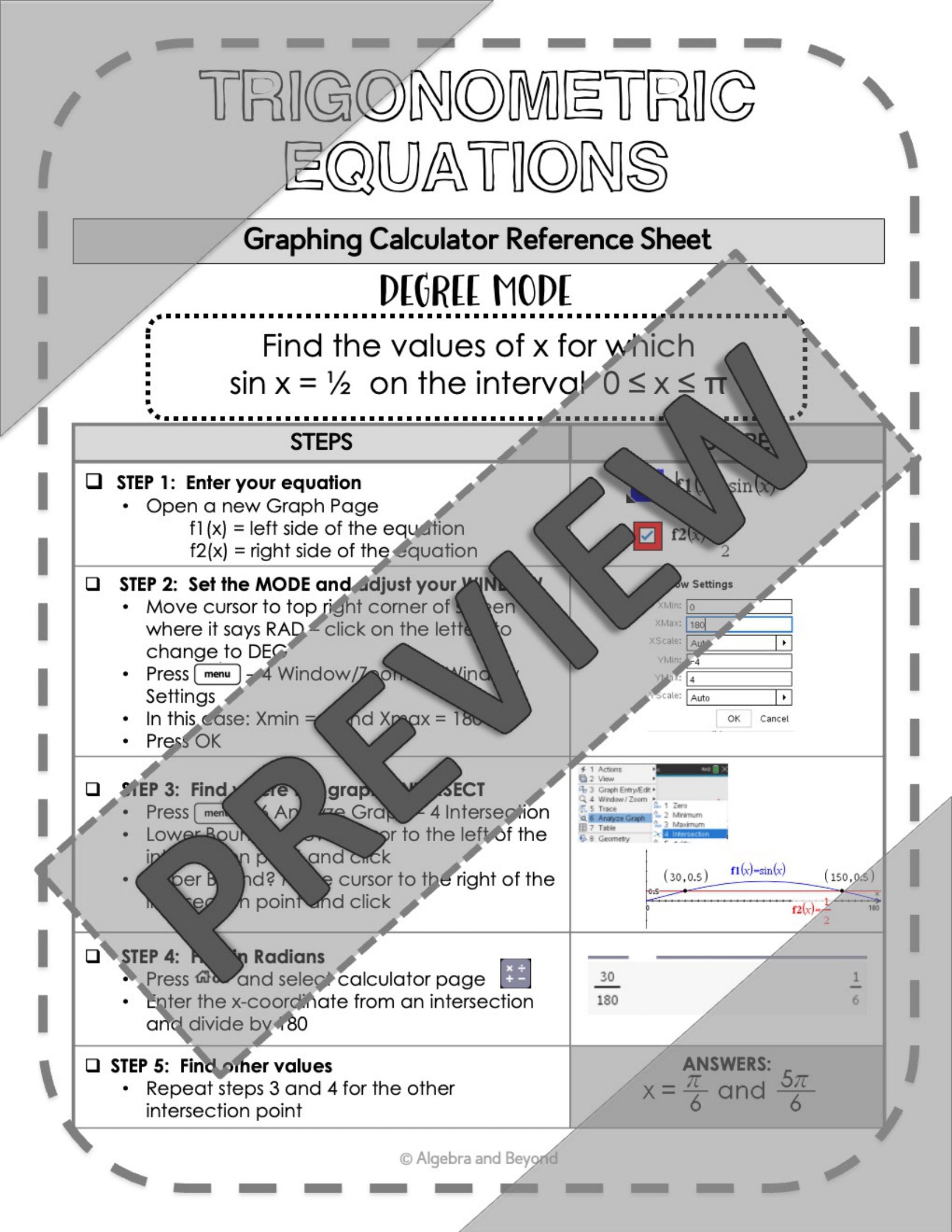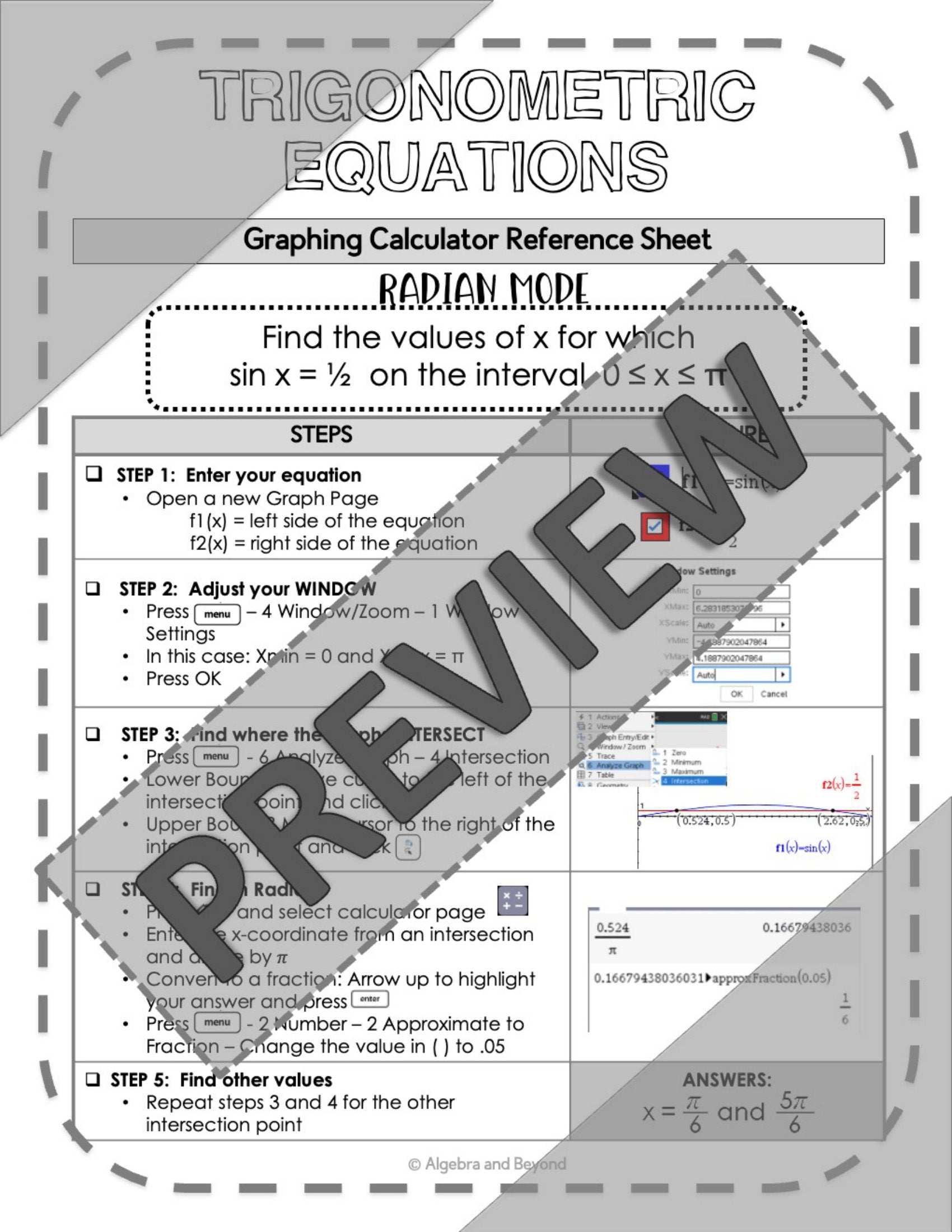 Solve Trigonometric Equations | TI-Nspire Graphing Calculator Reference Sheet