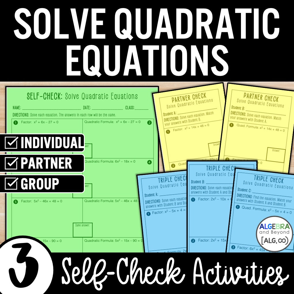 Solving Quadratic Equations Practice | Self-Check Review Activities