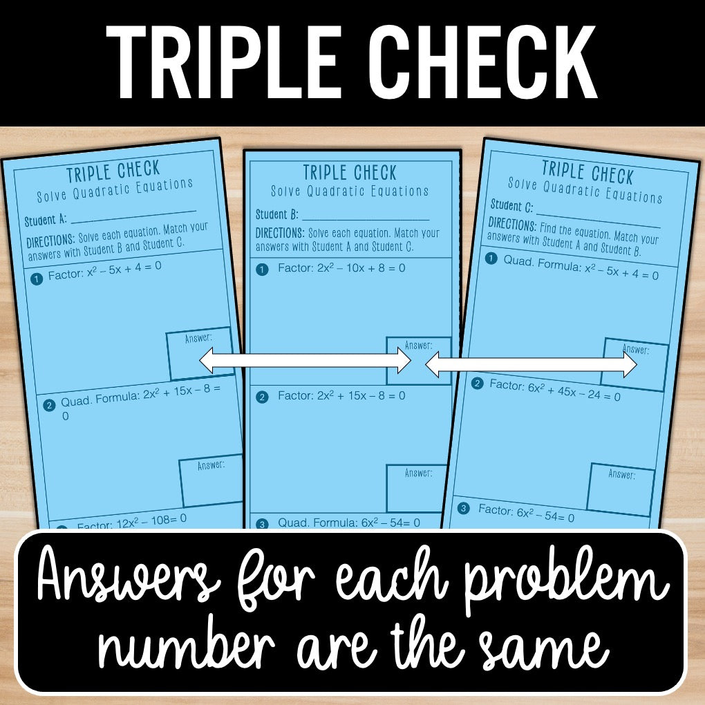 These resources that not only serve as rock-solid review but they also are self-checking. The best part? You're getting not one, not two, but THREE resources in one! Yup, handouts for individual, partner, or groups of three, each with different problems but those golden matching answers! Ready to dive in and make review a breeze? Let's do this!