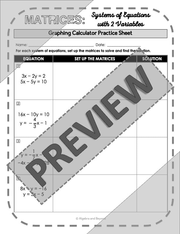 I used this resource to supplement my systems of equations unit to teach matrices to my algebra 2 students.