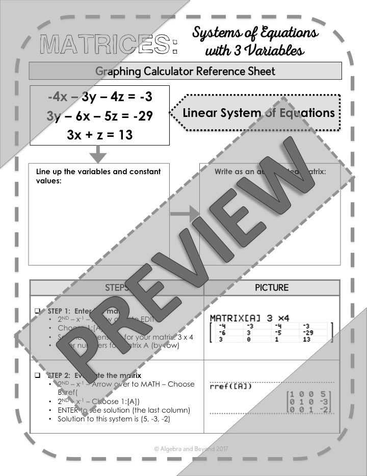 Systems of Equations with Matrices | TI-84 Graphing Calculator Reference Sheets