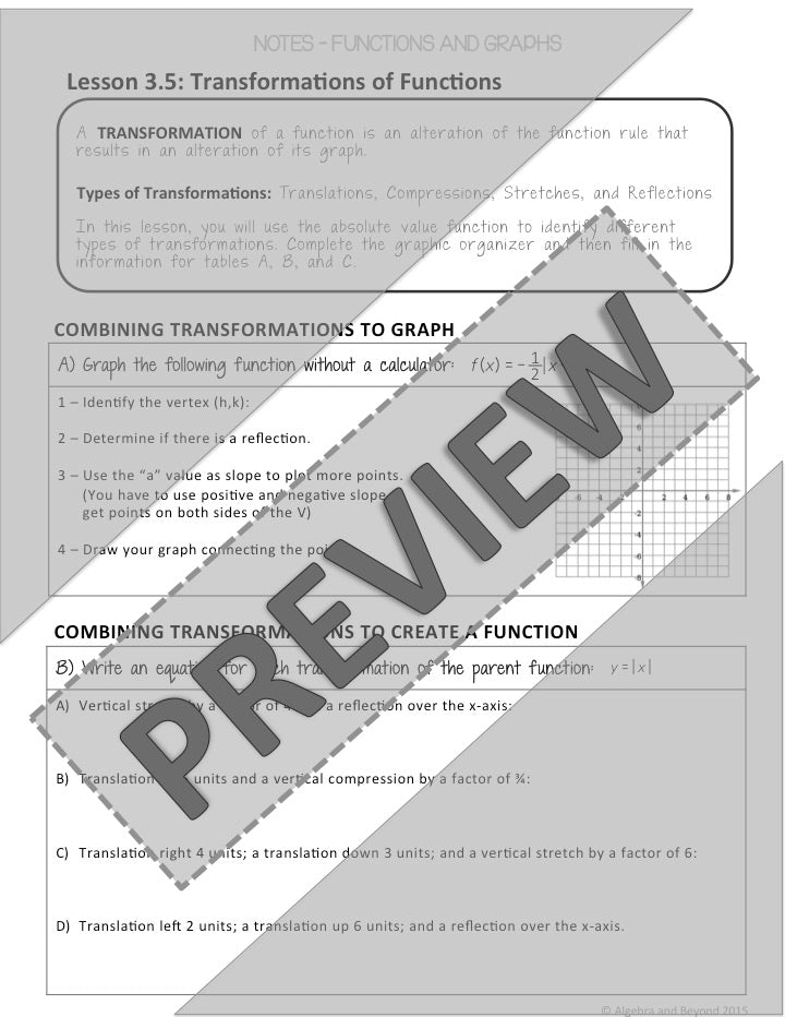I love you notes and practice problems. The notes really showed the students each type of transformation. I am glad to see a video on the notes to help students when absent or when they need to review the lesson.